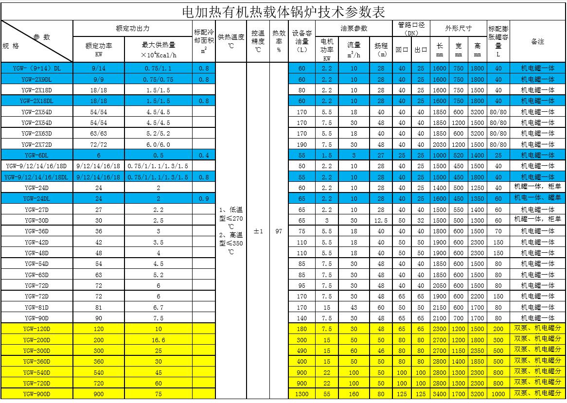 YGW系列電加熱有機熱載體鍋爐(俗稱(chēng)油加熱器)是一種以有機熱載體為傳熱介質(zhì),以冷卻水(軟化水)或空氣為換熱降溫介質(zhì),采用電加熱升溫,通過(guò)熱油泵強制循環(huán)的供熱和調溫設備。
